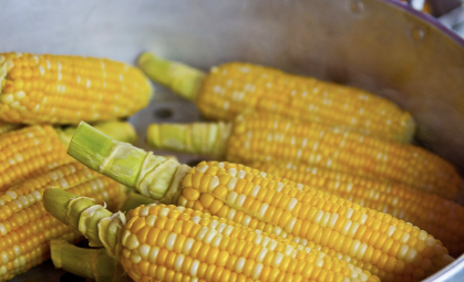 옥수수를 먹을 때는 배아 부분에 영양이 집중되어 있으므로 배아까지 꼼꼼하게 긁어내어 먹는 게 좋습니다.