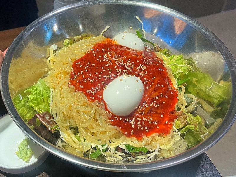 하양 맛집 답게 사이드 메뉴도 훌륭합니다. 특히 '삼형제 쫄면'은 양이 매우 풍성하여 3인이 나눠 먹기 좋으며, 새콤달콤한 맛이 고기의 느끼함을 잡아줘 하양 맛집의 품격을 높여줍니다.