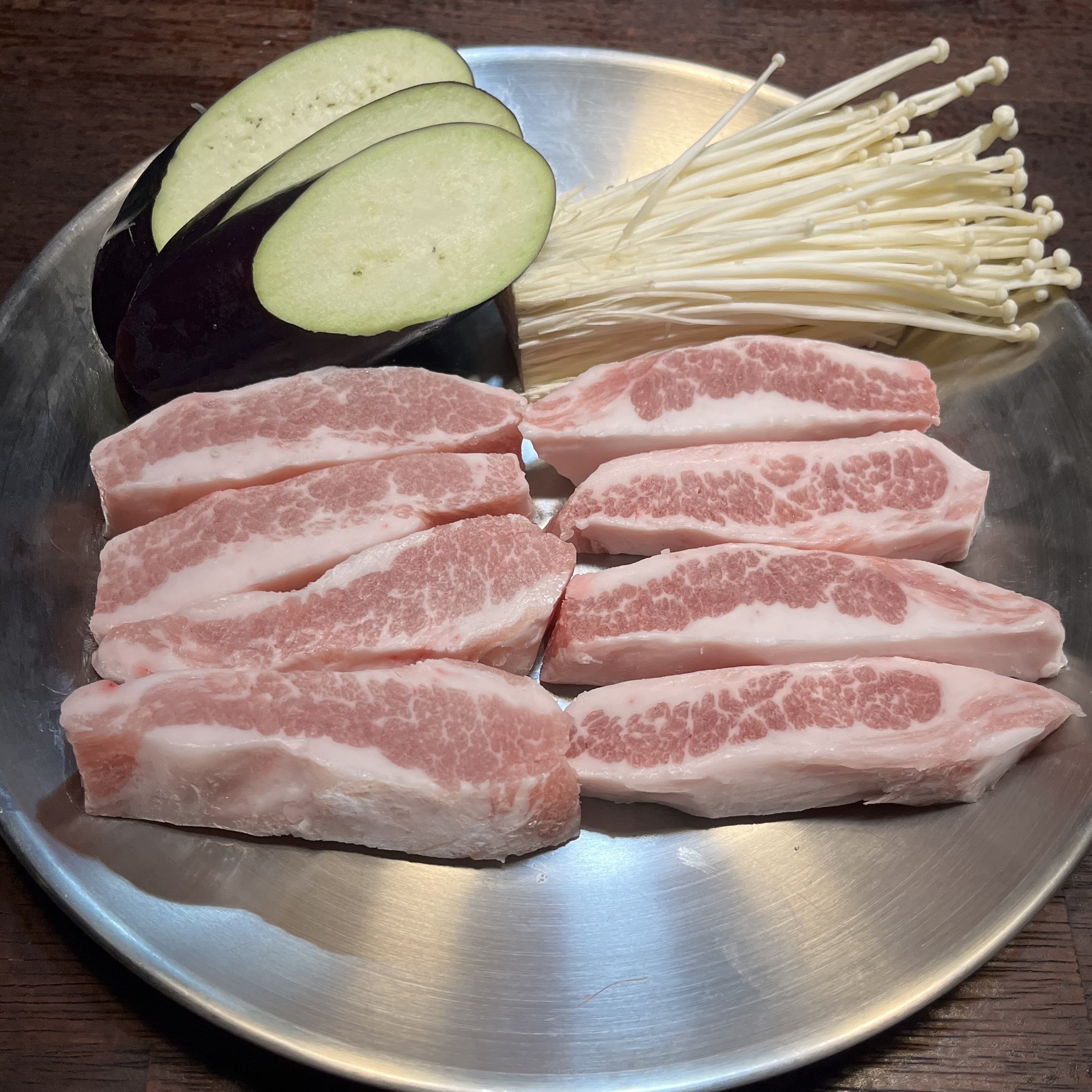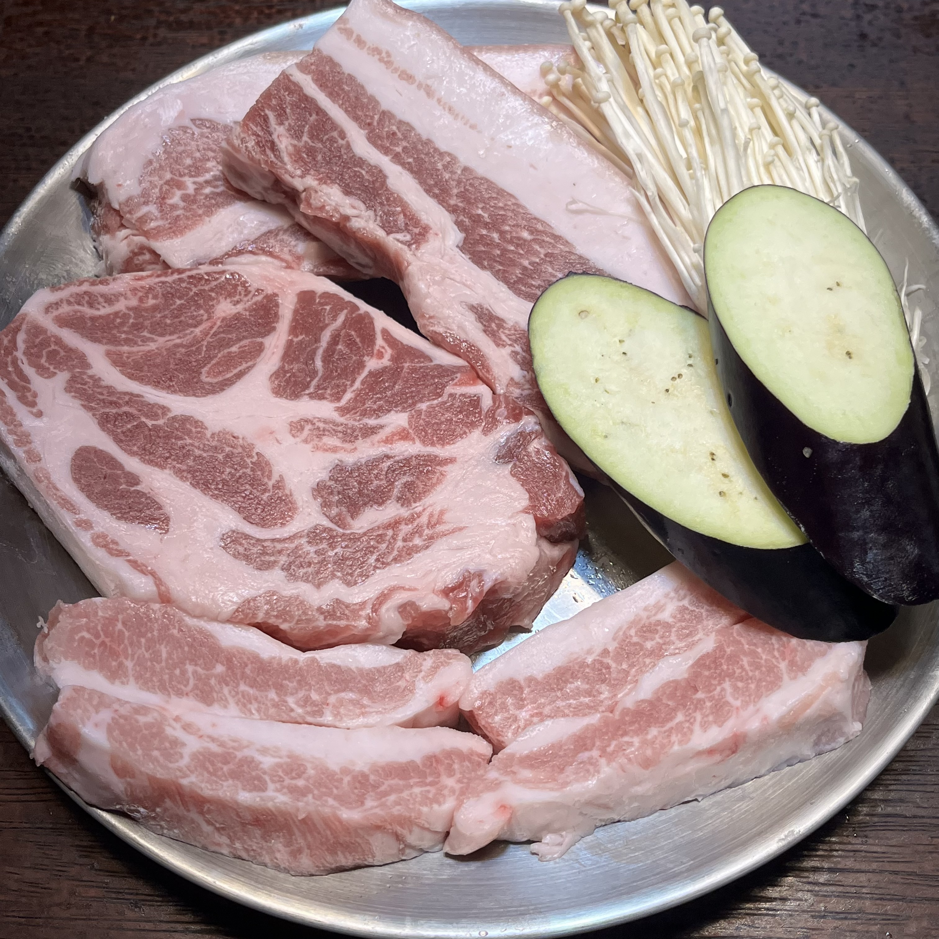 하양 맛집 '뫼산'의 대표 메뉴는 삼겹살, 목살, 항정살을 한 번에 맛볼 수 있는 '뫼산세트(47,000원/550g)'입니다. 2-3인이 즐기기에 적당한 양으로, 하양 맛집을 찾는 소규모 모임에 안성맞춤입니다.