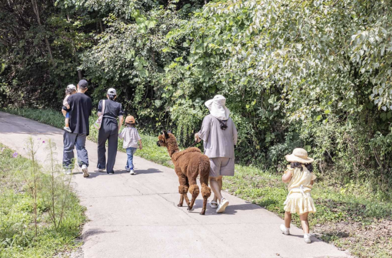 온순한 알파카와 직접 소통하면서 교감할 수 있는 체험으로, 자연 속 힐링을 원하는 사람들에게 가장 사랑받는 프로그램입니다. 푸른 숲을 알파카와 함께 발을 맞춰 걸으며 교감할 수 있는 알파카월드의 대표 체험입니다. 별도 요금(12,000원)이 필요하며, 오후 5시에 마감됩니다.