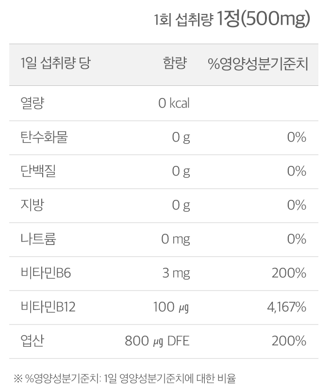 800μg | 비타민 B12 | 활성형 엽산 B12 조합 |