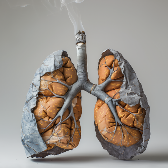폐암의 약 85%는 흡연에 의해 발생합니다. 담배에는 약 7,000종의 유해 물질이 있으며, 이 중 발암물질은 약 60여 종으로 밝혀졌습니다. 흡연자는 비흡연자보다 폐암에 걸릴 위험이 4-50배 증가하며, 40년간 매일 1갑씩 흡연한 사람은 약 20배 높은 발병 위험을 가집니다.