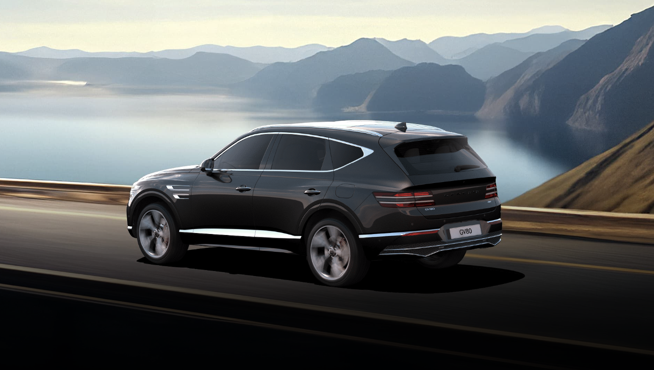 제네시스 GV80의 측면은 파라볼릭 라인이 만들어내는 우아한 실루엣으로 역동적인 우아함을 표현합니다. 후면 디자인은 히든 머플러를 적용하여 절제된 고급스러움을 구현하며, 제네시스 크레스트 그릴 형상을 강조한 리어 디퓨저가 전면부와 일체감 있는 디자인을 완성합니다.