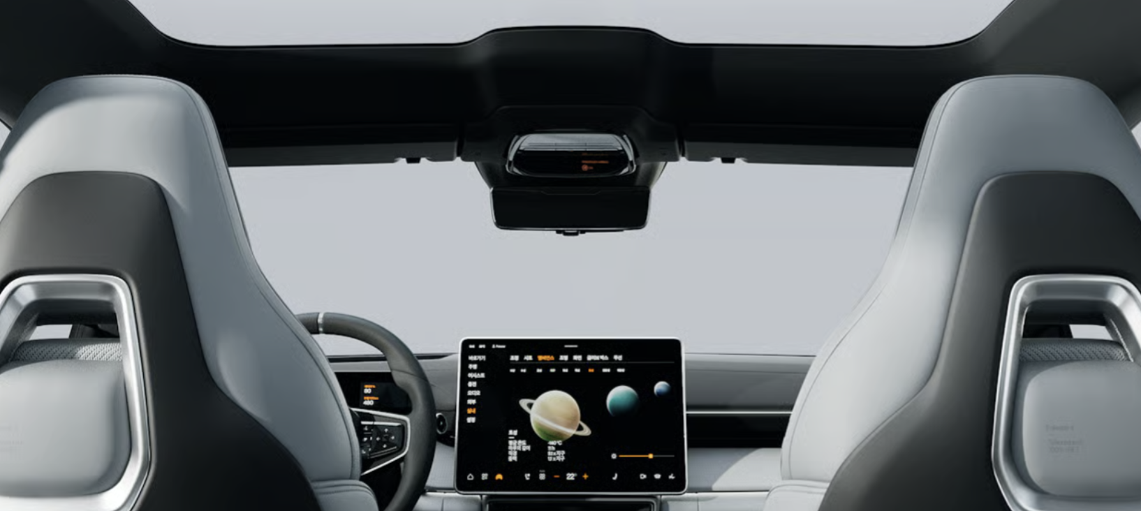 리어 윈도우가 없는 혁신적인 디자인이 가장 큰 특징입니다. 대신 루프에 장착된 HD 카메라와 고해상도 디스플레이로 후방 시야를 제공하며, 2열 공간을 더 넓게 확보할 수 있었습니다.