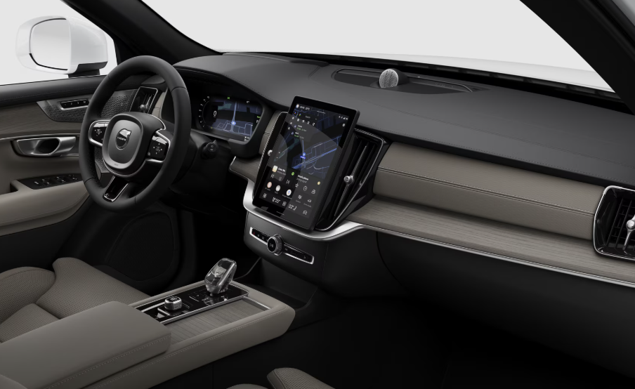 볼보 XC90의 실내는 11.2인치 터치스크린과 12.3인치 디지털 클러스터를 중심으로 구성됩니다. TMAP, NUGU, FLO가 내장된 인포테인먼트 시스템과 Apple CarPlay가 기본 제공됩니다. 파노라믹 선루프, 4구역 독립 온도조절 시스템, 어드밴스드 공기청정 기능이 탑재됩니다.