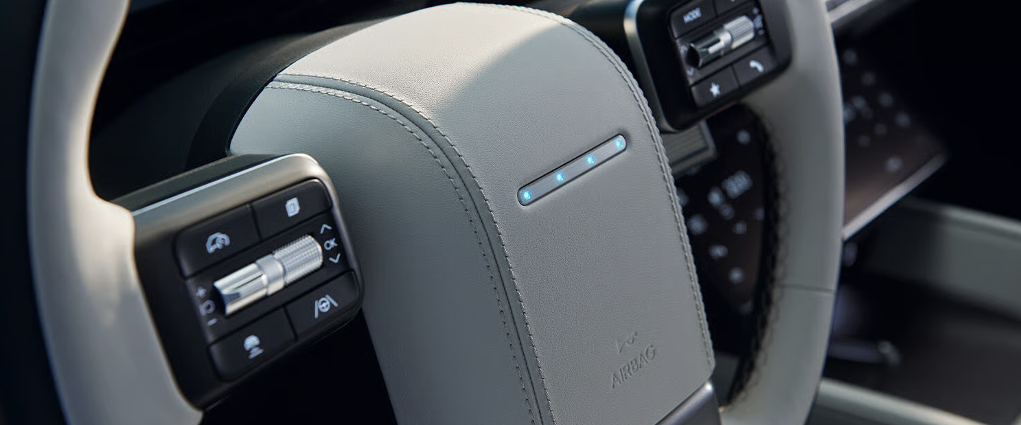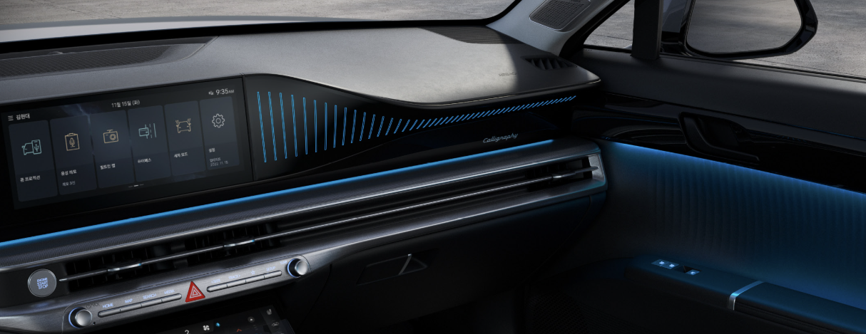 현대 그랜져의 실내는 12.3인치 듀얼 디스플레이가 중심을 이루며 첨단 기술과 고급감을 동시에 구현합니다. 현대 그랜져에 적용된 천연 가죽 시트와 우드 패널은 최고급 소재의 활용으로 프리미엄 세단의 품격을 완성하며, 현대 그랜져 고유의 럭셔리 감성을 완벽하게 표현합니다.