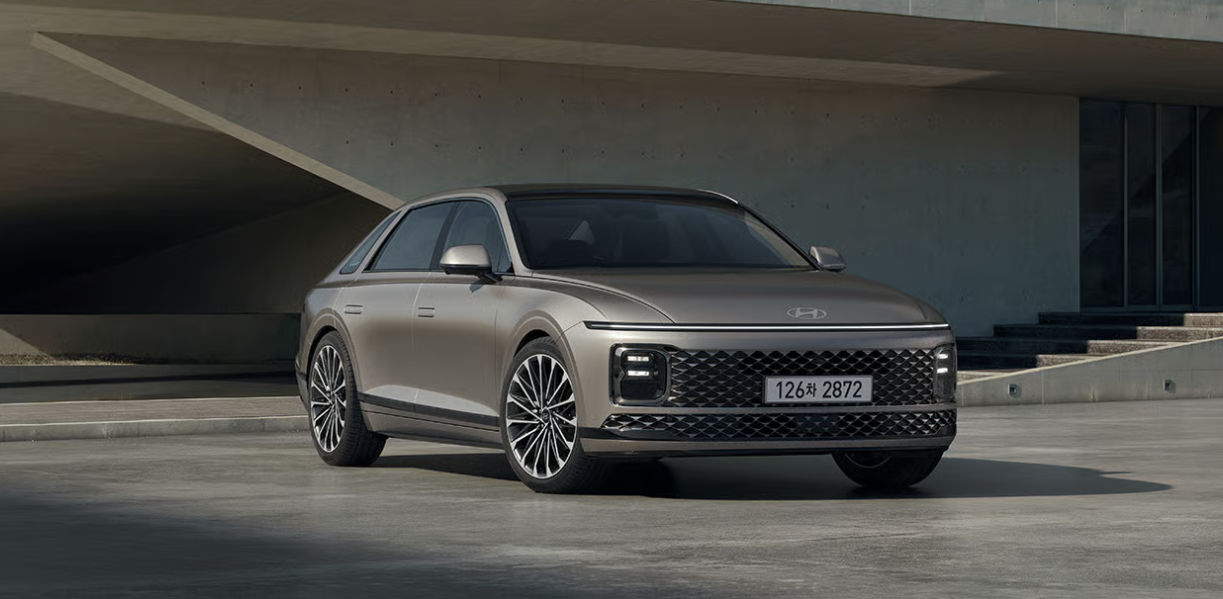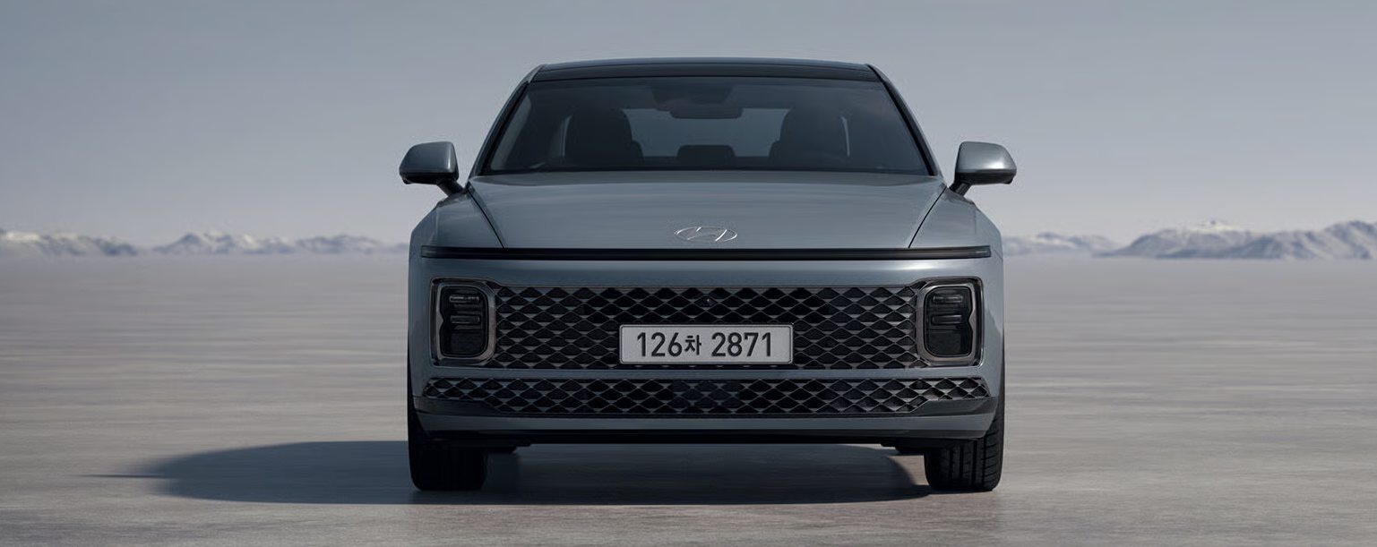 현대 그랜져는 캐스케이딩 그릴과 날카로운 LED 헤드라이트가 조화를 이룬 강인한 전면부가 특징입니다. 현대 그랜져의 전장 5,035mm, 전폭 1,880mm의 당당한 차체는 프리미엄 세단으로서의 위상을 과시하며, 현대 그랜져만의 독특한 존재감을 연출합니다.