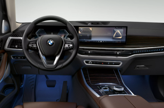 BMW X5의 인테리어는 프리미엄 소재와 최신 기술이 조화를 이룹니다. BMW X5에 적용된 12.3인치 계기판과 14.9인치 디스플레이가 연결된 커브드 디스플레이는 미래지향적인 분위기를 연출합니다. BMW X5는 넓은 실내 공간으로 탑승자들에게 최상의 편의성을 제공합니다.